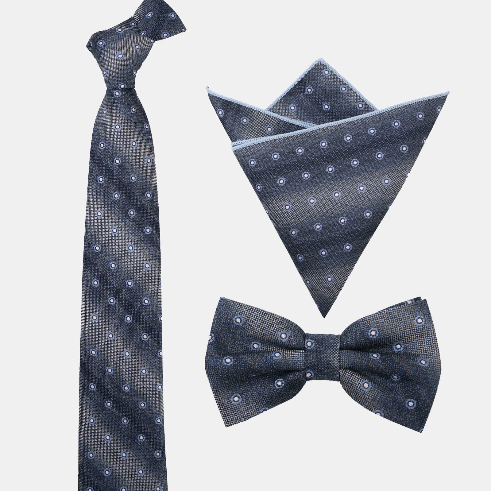 - This is a refined men's accessory set that features harmonious styling and subtle elegance. Crafted from smooth fabric with great drape it showcases a deep gray gradient base paired with delicate dot patterns.