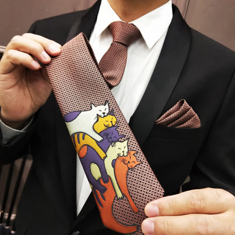 The necktie has a picture of four cats snuggling togethert. Original embroidery makes you excellent in all formal and informal occasions. Comfortable to wear and to touch, and is a must-have accessory for any successful man.