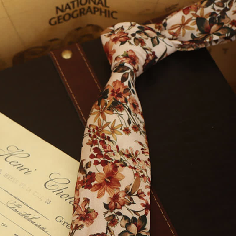 These neckties feature stunning sketched flower pattern in a beautiful blend of colors. The floral printed necktie has a very vintage look that can be dressed up or down for any occasion. Whether you're headed to a nice dinner or just to the office, our tie sets will keep you looking sharp without sacrificing comfort.