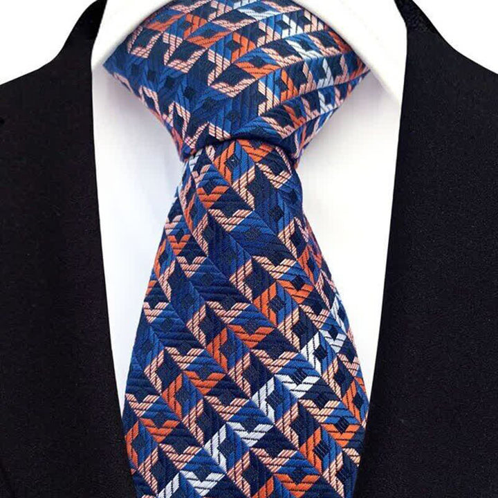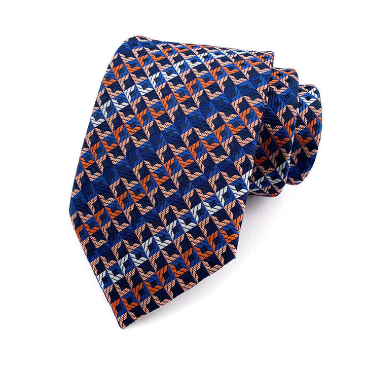 The check pattern on this necktie is arranged in stripes, giving it a rich, multi-dimensional texture that is both eye-catching and sophisticated. The plaid design is a timeless classic and a versatile choice that can be worn with a wide variety of outfits and styles.