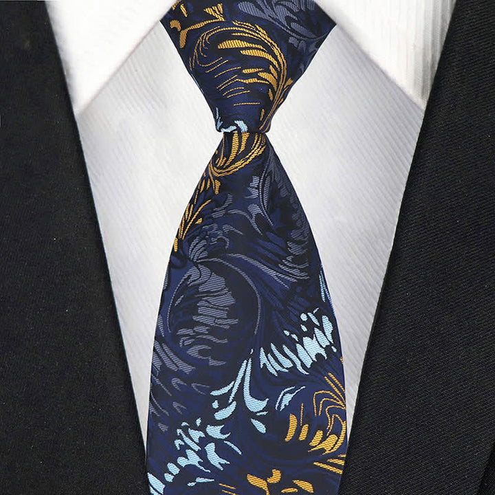 Reinvent your style with the modern and minimalistic magic of this marvelously designed floral patterned necktie in a premium shade of black. The different colored flowers on the tie are arranged in a striped pattern to form a special appearance.