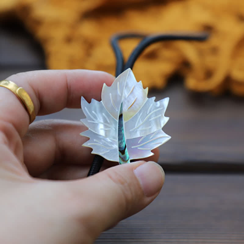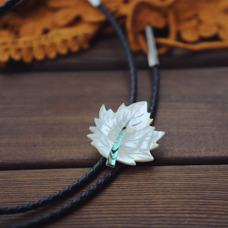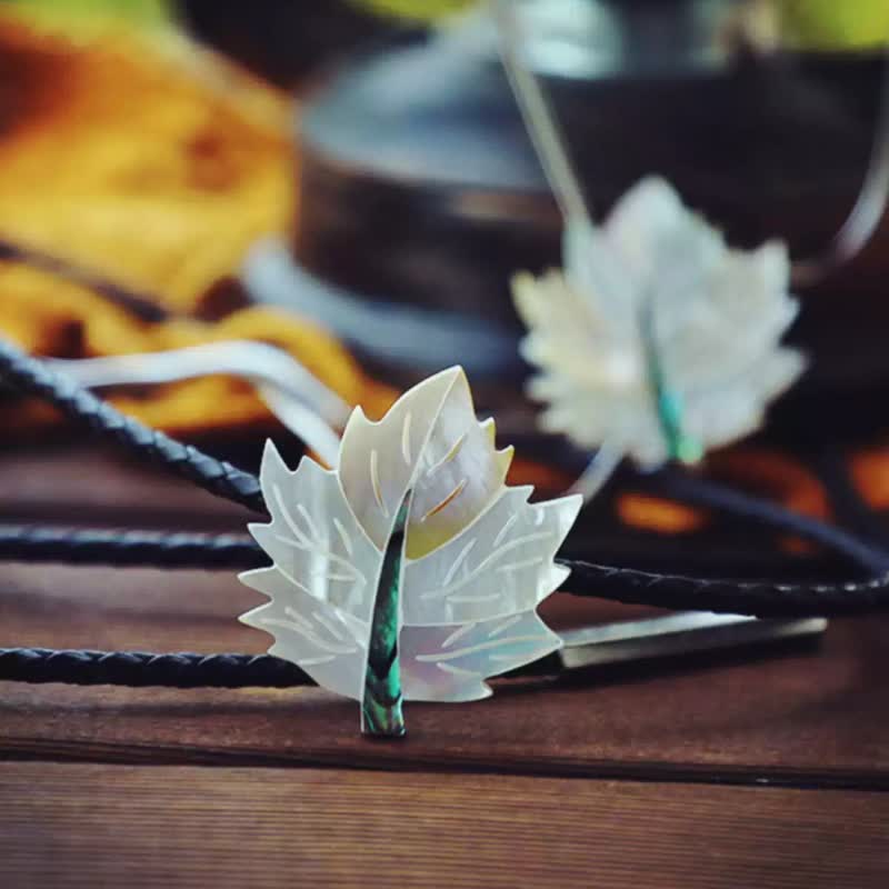 Nice smooth around edge, leather rope is so cool, retro creative delicate shell maple leaf shape design make them more special and unique. Looks nice with a suit and vest or just a western shirt. Because the pendant is made of natural shell, the color and texture will be different.