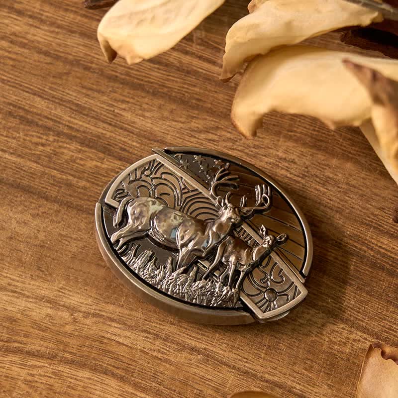 - DIY deer buckle is made of high quality alloy and adurable. With a slight push of your finger, the center of the belt buckle can easily slide out.