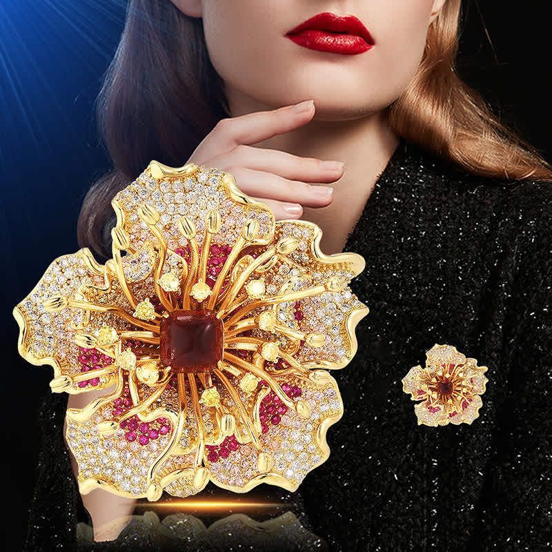- Gold plated flower petals and flower stamens were encrusted in glimmering colore zircons.