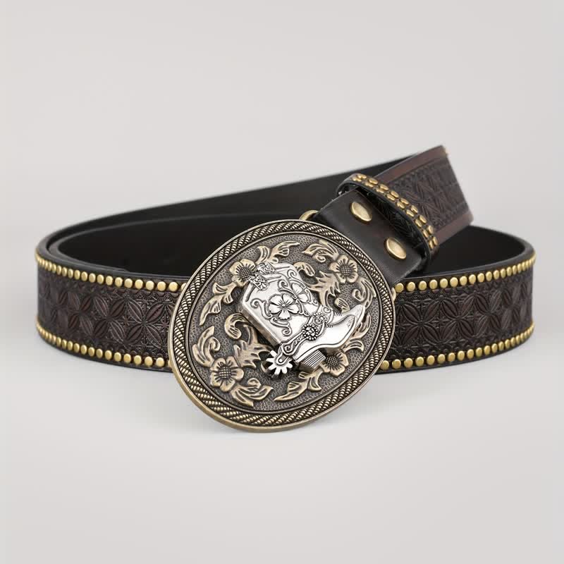 Men's Retro Silver Boots Oval Buckle Leather Belt