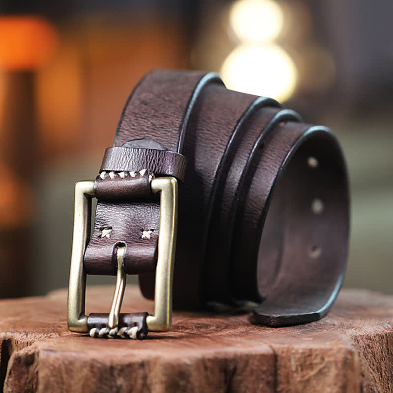 Hand-Made Sewing Retro Jeans Genuine Leather Belt