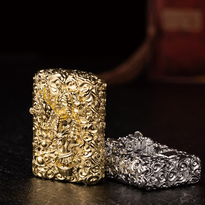 - This kerosene lighter is made of high-quality metal material, with engraved relif pattern.
