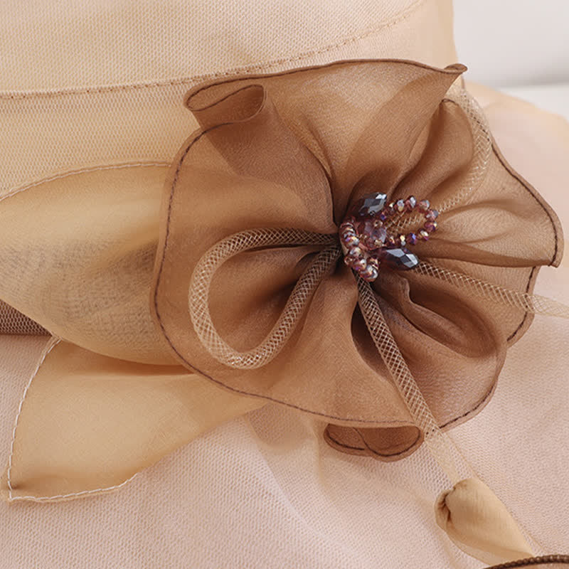 What it can offer you is effective sun protection hat because of its wide brim design; and it can add a touch of elegance because of its floral and silky surface design. Featuring a large brim design, it effectively protects you from sun and wind.