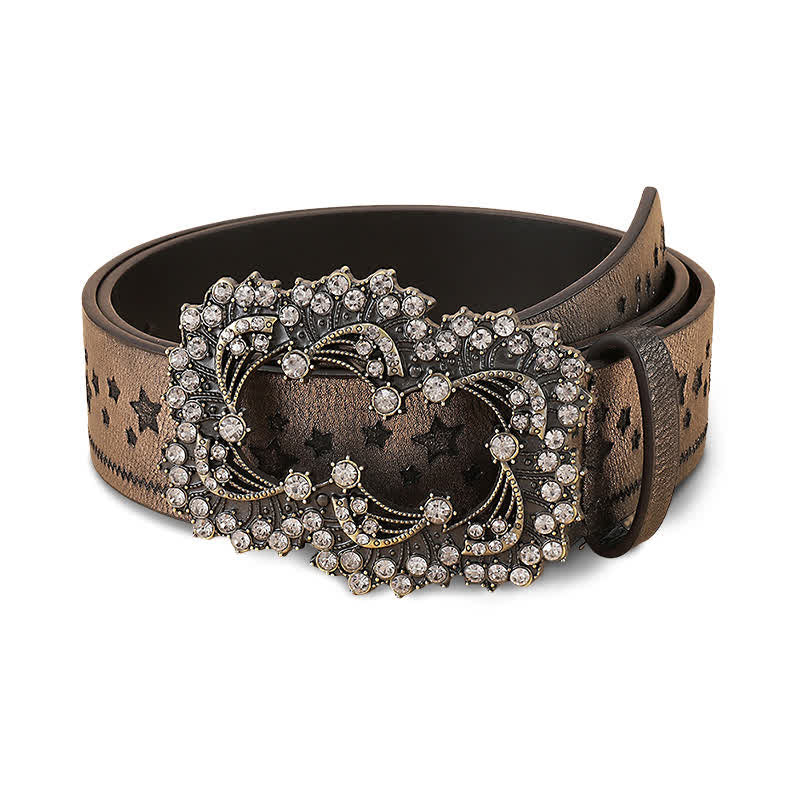 Women's Rhinestone Pentagram Embossing Leather Belt