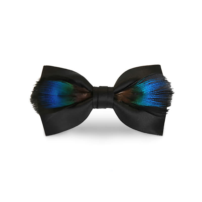- Add an exotic touch to your favorite suit or tuxedo with this feather bow-tie featuring vibrant color.