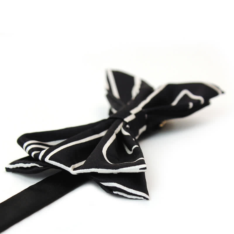 - The bow tie has a ravishingly fine white geometric lines detail.