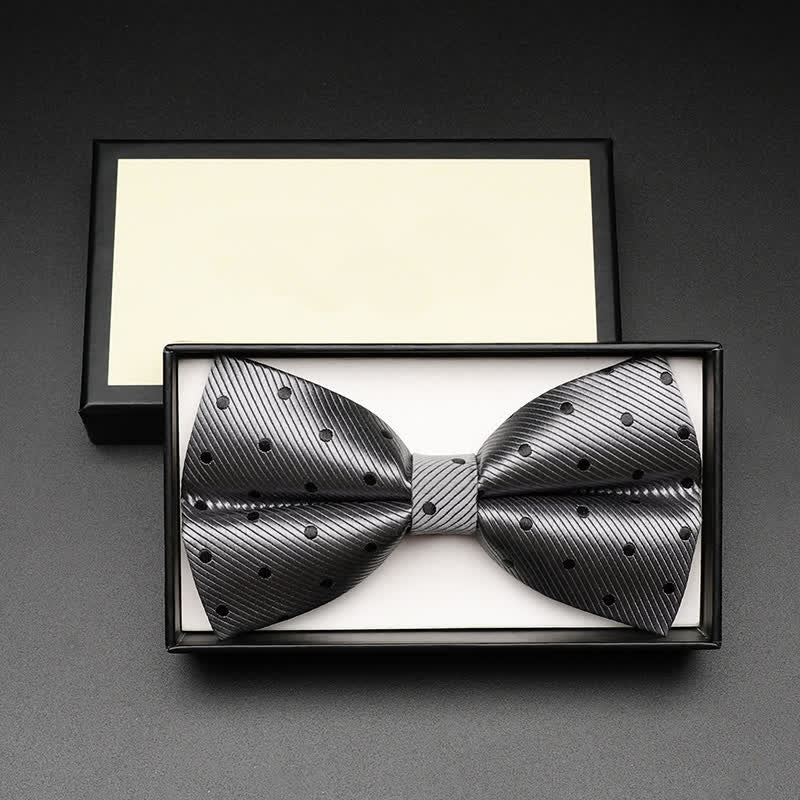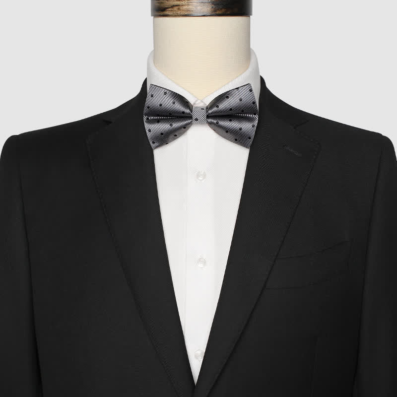 - The classic gray bow tie exudes sophistication that will never go out of style.
