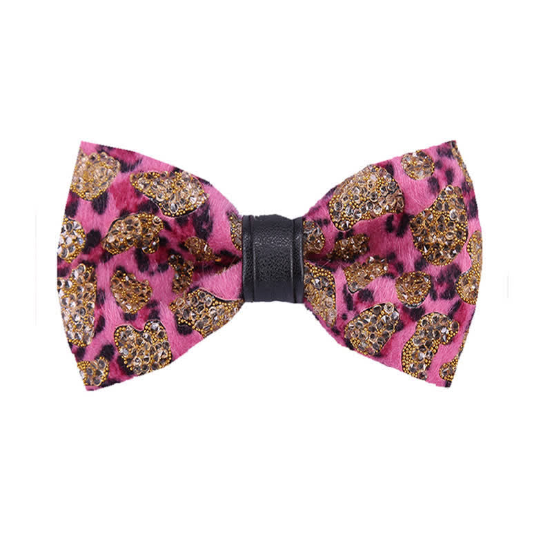 - These stunning leopard print bow tie is made of chunky non shedding glitter in blue, pink and gold.