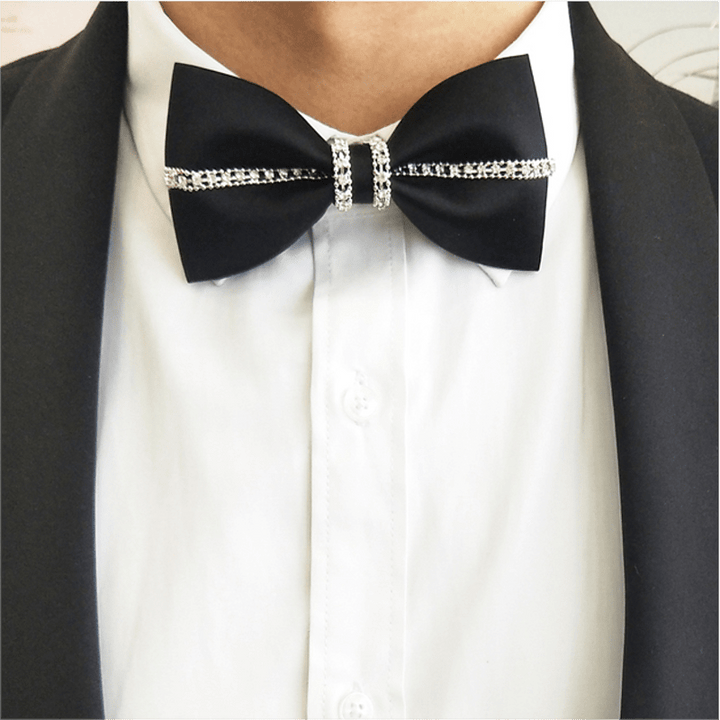 - Beautiful bow ties are handmade from finest satin fabrics, with sparkling rhinestones.