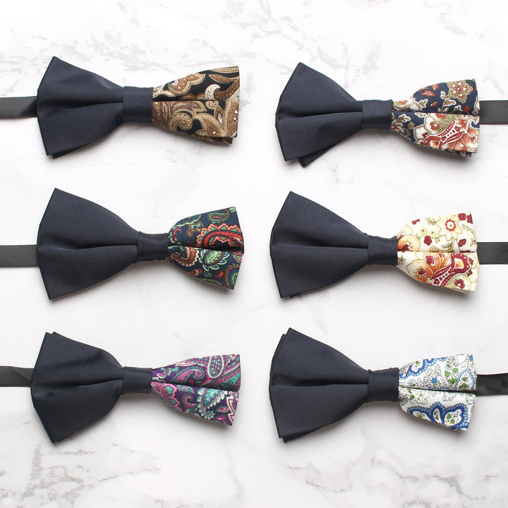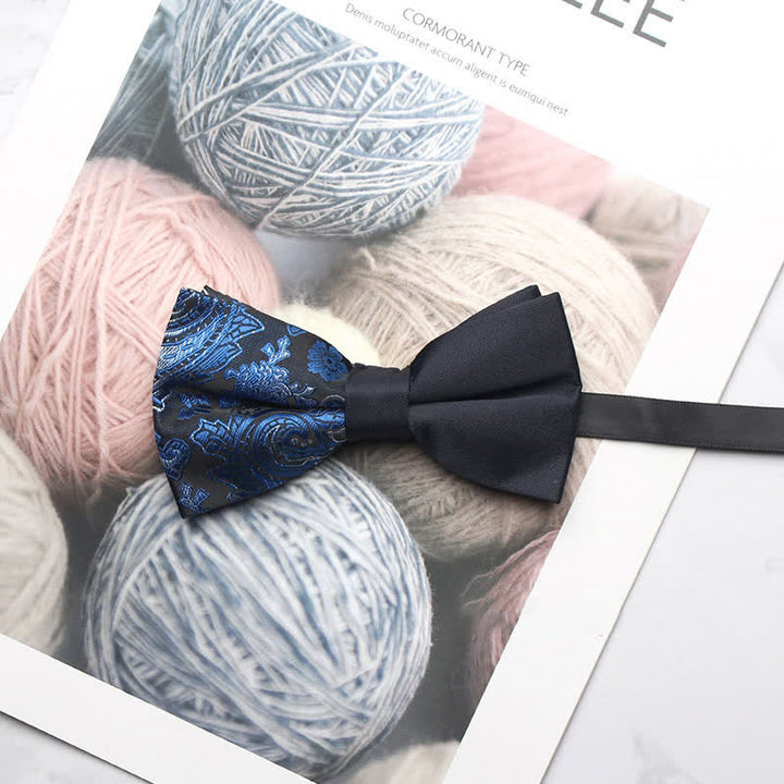 - The bow tie has subtle paisley patterns that give it a distinctive look.