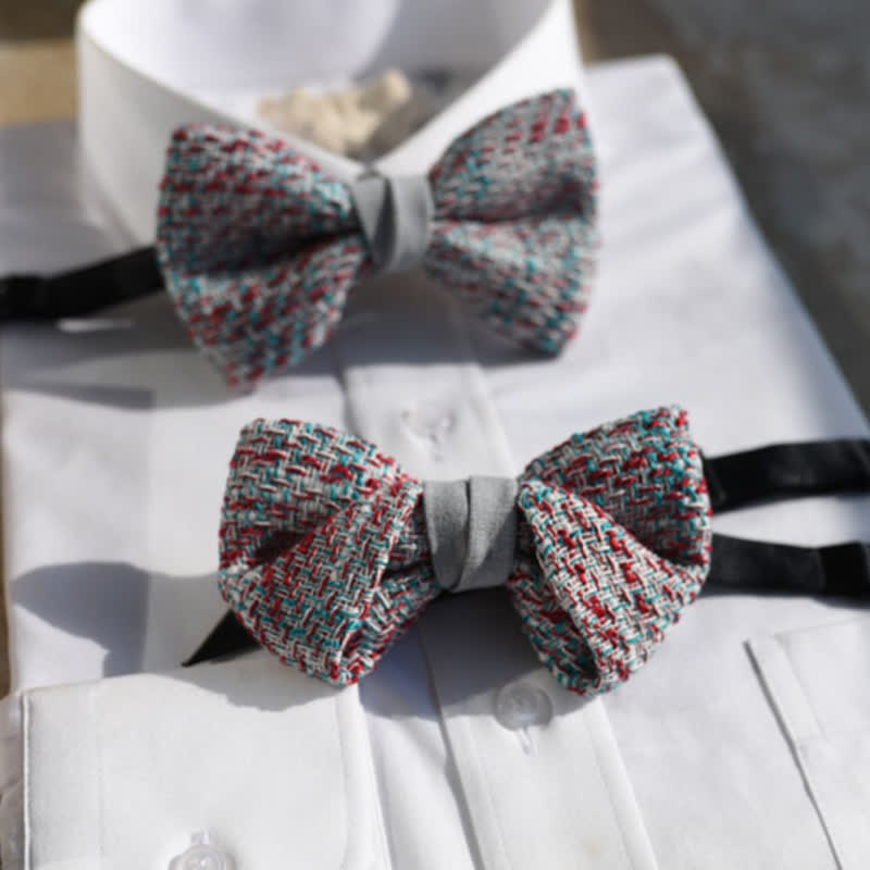 - Stuning mixed-color woven bow tie. It adds a rustic touch to any outfit.