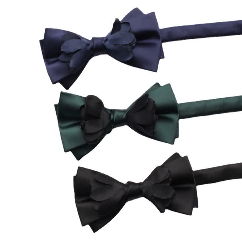 Men's Yarn-dyed Double Layer Flower Ribbon Bow Tie