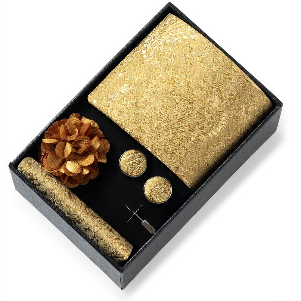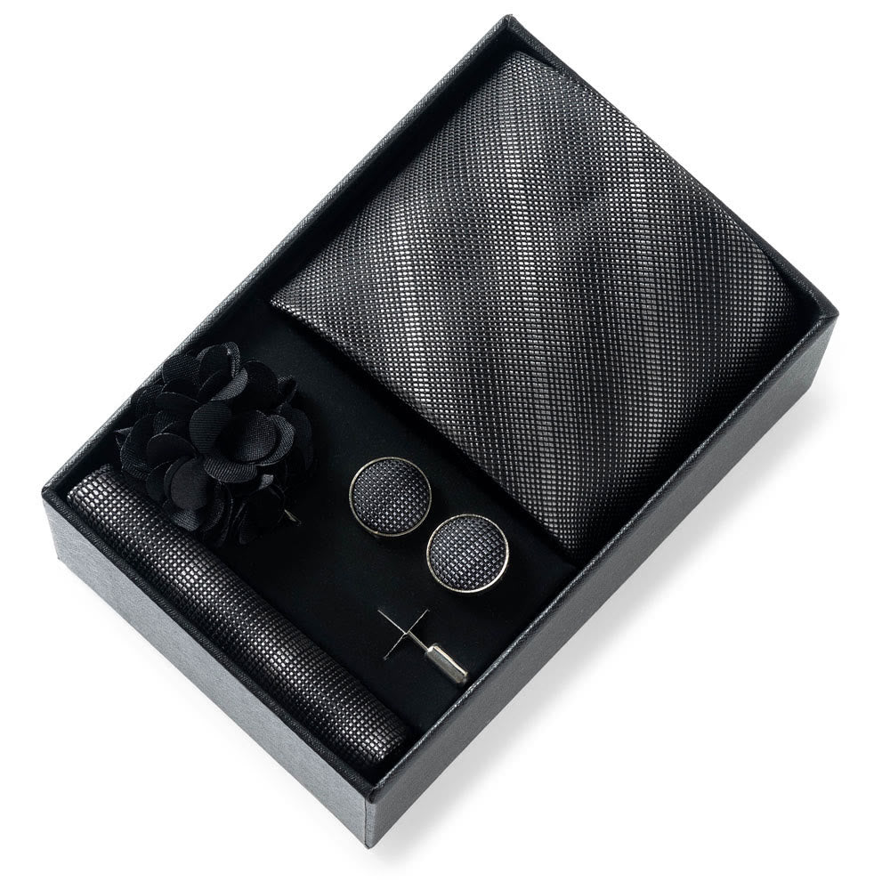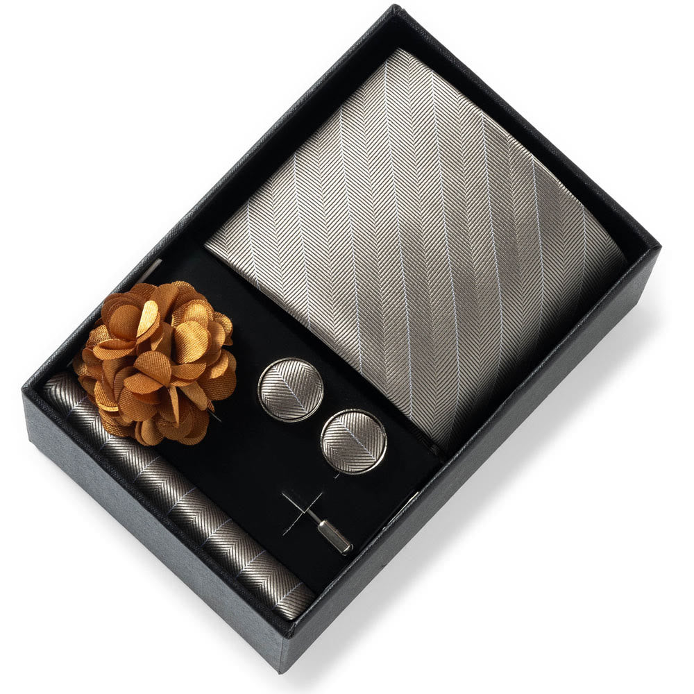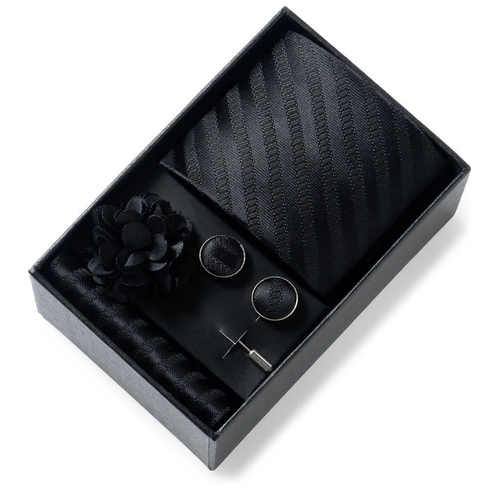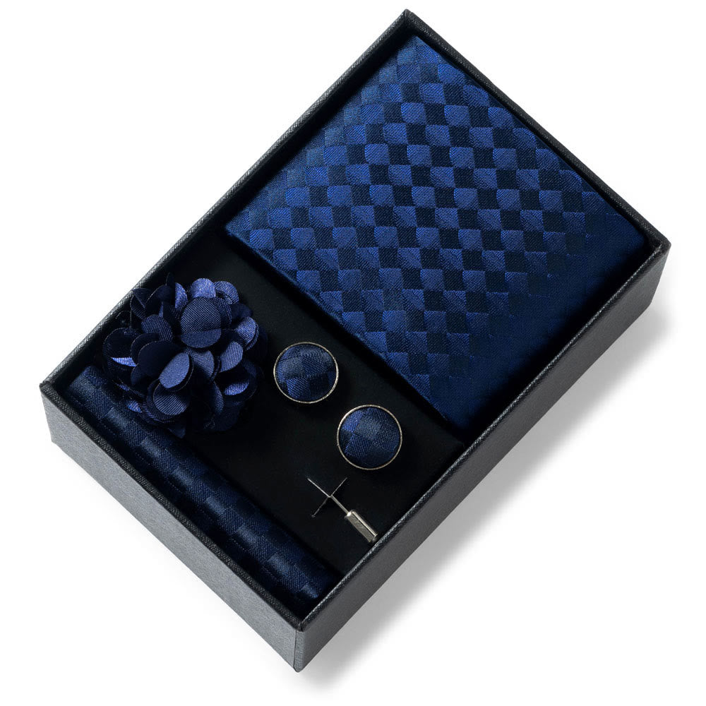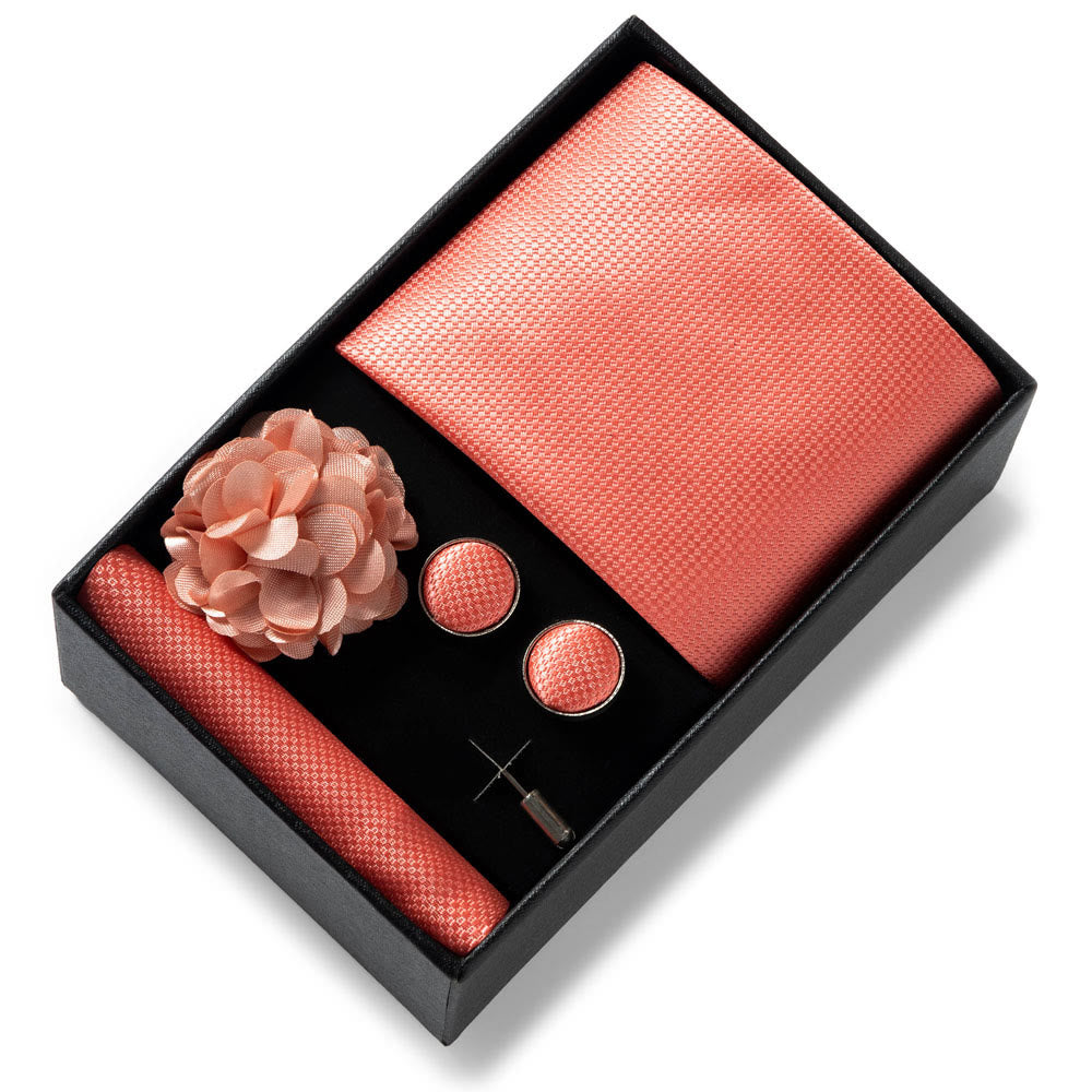 • Includes: Necktie + Pocket Square + Cufflinks + Boutonniere