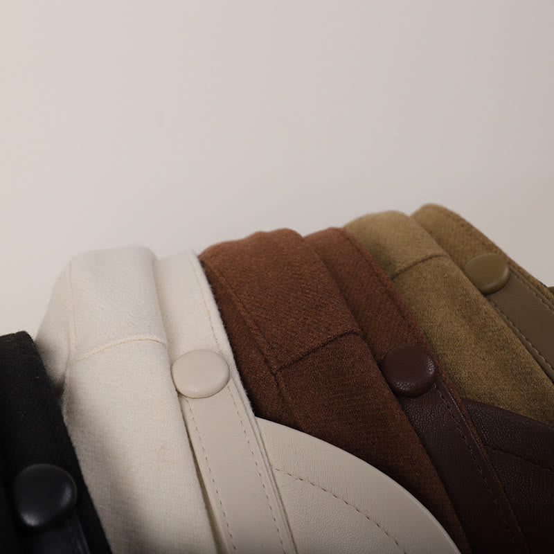 - Redefine cold-weather style with this modern unisex beret, featuring a structured flat top and a sleek PU brim for a contemporary edge.