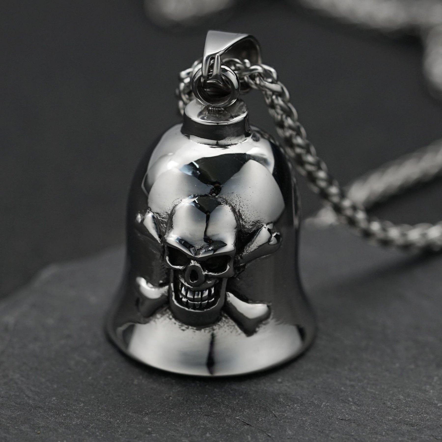- Forged in solid alloy with an antique silver finish, this keychain features a fearsome Viking skull mounted upon a classic riding bell.