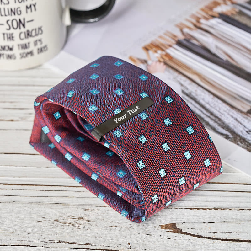 - The tie clip is designed with a built-in chain clasp, which not only keeps the tie in place and prevents it from being blown by the wind, but also adds a touch of playful detail and layering. The matching cufflinks echo the tie clip, creating a unified overall style.