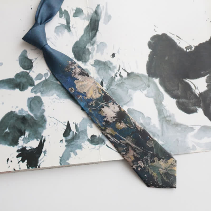 Bring new life to your business-ready look with the tonal botanical pattern shimmering on this Blue & Green Oil Painting Lotus Leaf Necktie.