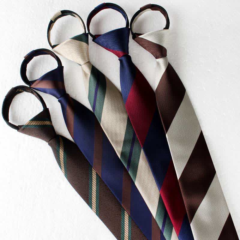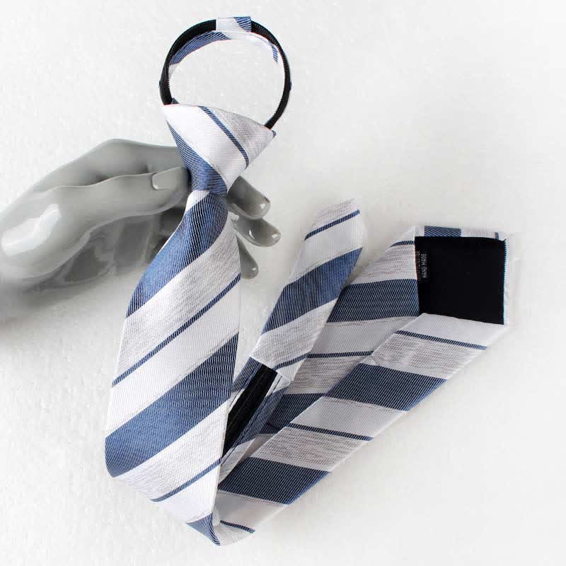 Zipper ties are a super convenient pre-tied necktie. You can get dressed in a tie and shirt in under a minute! This pre-tied option provides a polished look for uniforms, groups and, certainly, individuals who can’t or prefer not to tie their own ties.