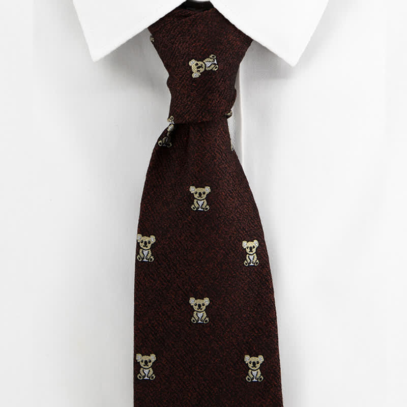 This lovely koala motifs necktie goes really well with neutral-toned clothes, breaking the monotony and giving you a lot more energy.