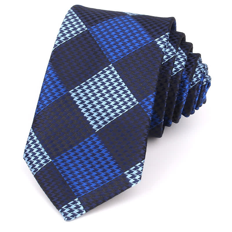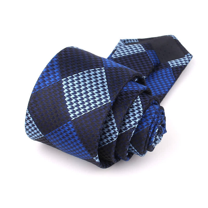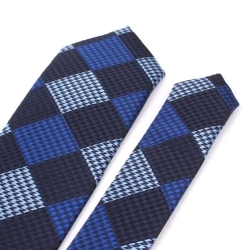 Create an involved look this season with this large check necktie. The subtle addition of white or balck to the check pattern of this tie provides a pleasing trick of the eye making for a complex visual appeal. Everyone will be doing a double take.