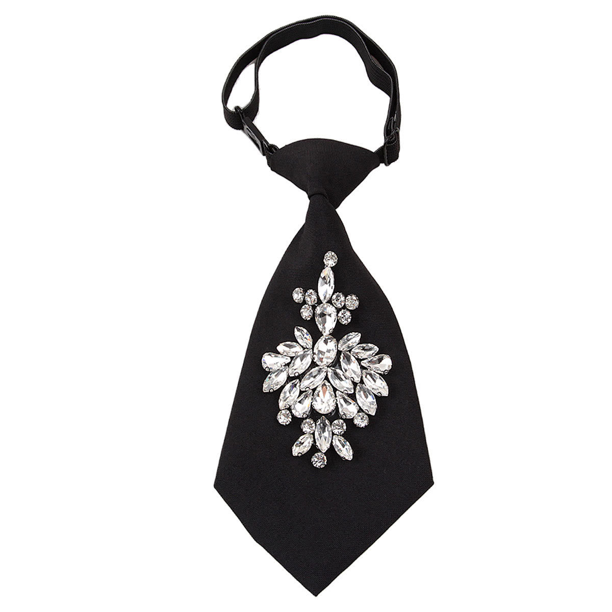 - This elegant short necktie features brilliant rhinestone detailing and a pre-tied design for instant sophistication.