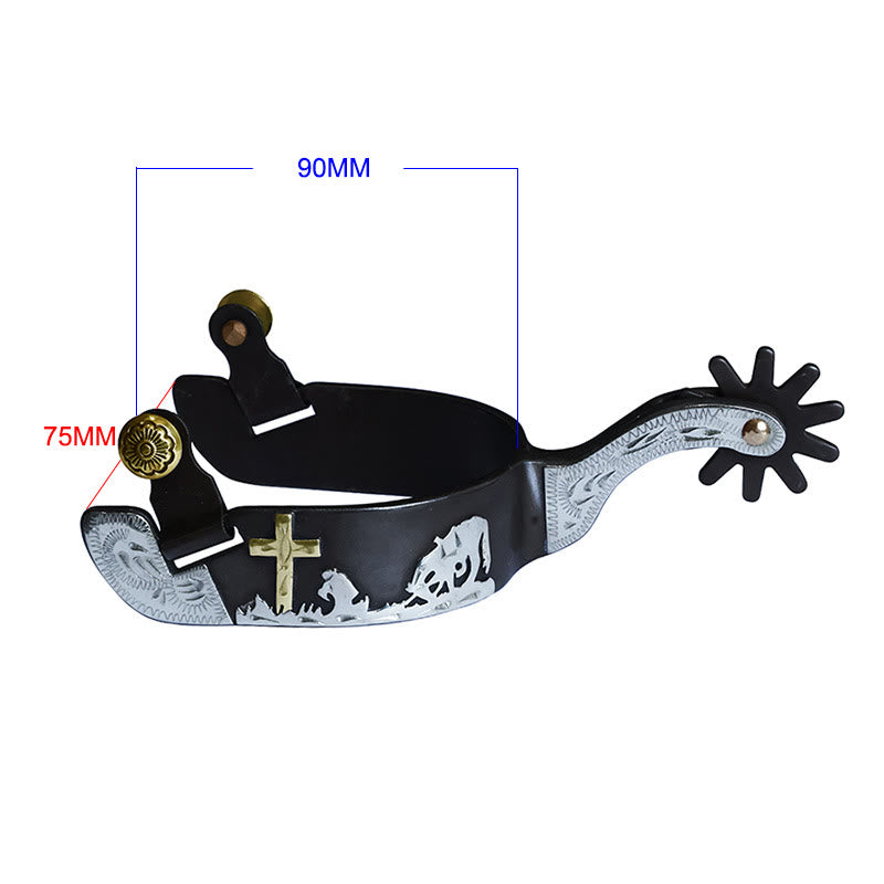 - Each spur is carefully crafted from high-quality metal, adorned with white copper accents and featuring hand carved cross patterns, paying tribute to tradition with bold visual impact.