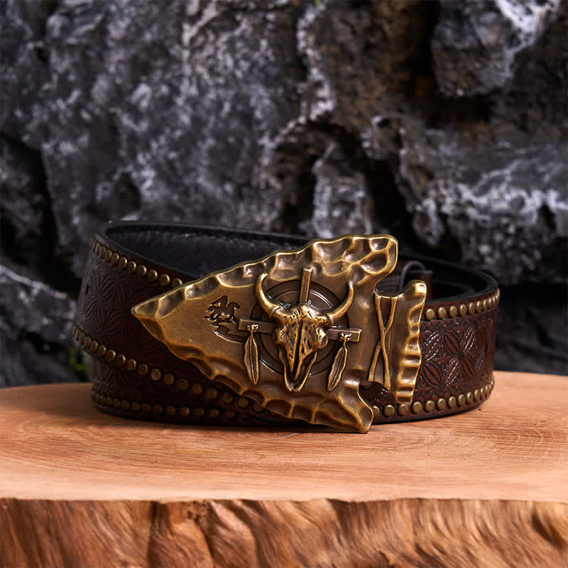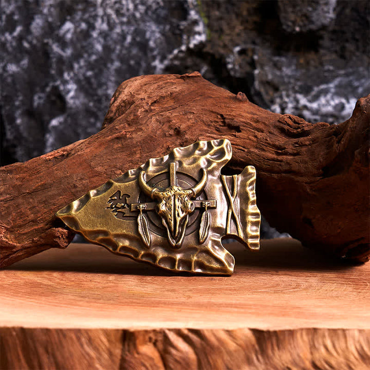 The shape and the design of this belt buckle is unique. It is triangular in shape and the whole body is bronze craved. This bull head buckle is decorated with national flavor, like a fine art. Upgrade your look with this western belt buckle.