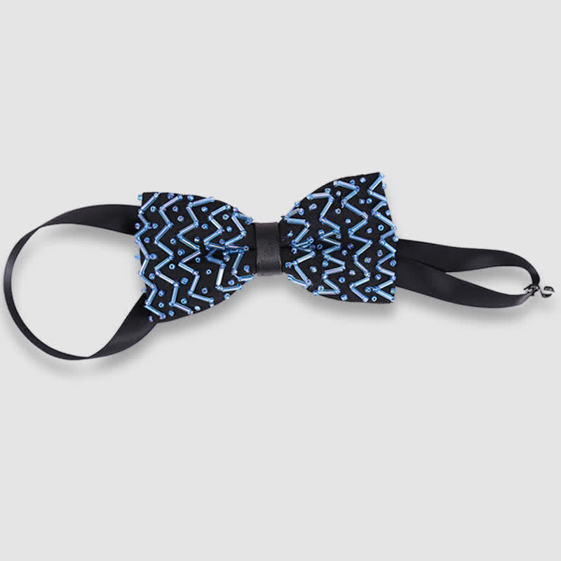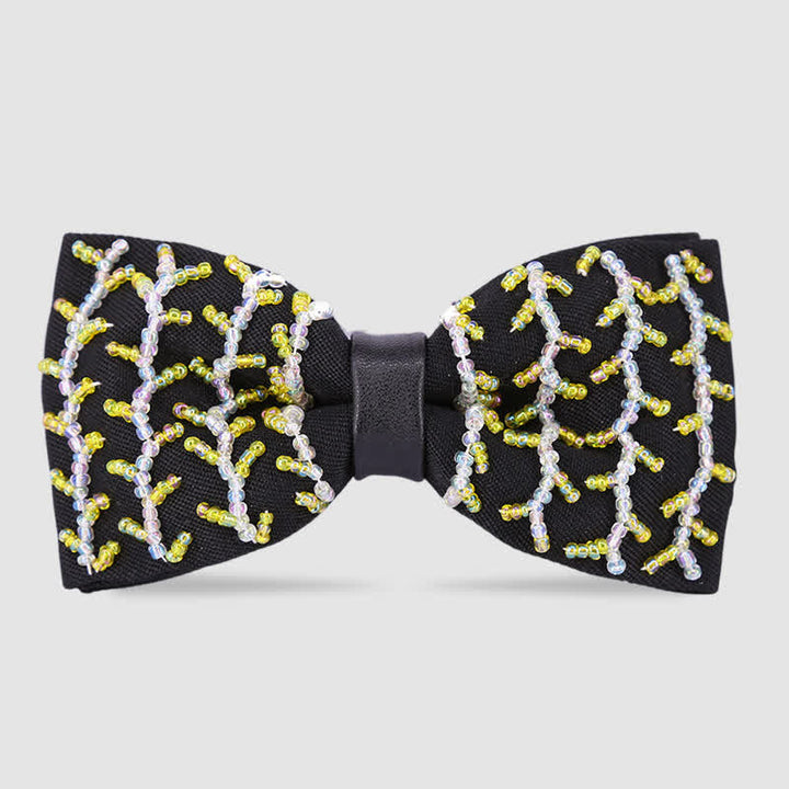 - Set the stage for sophistication with our black bow tie, adorned with intricate and colorful beads.