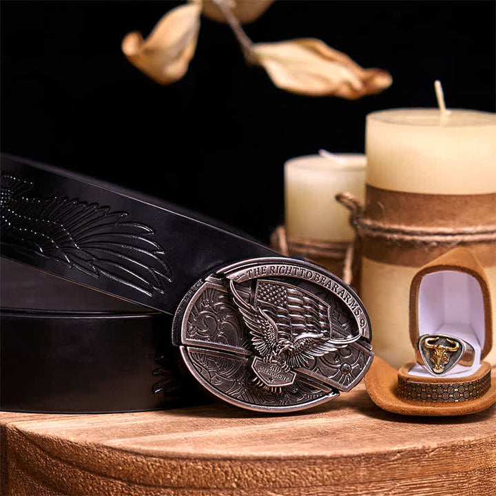 • DIY eagle buckle is made of high quality alloy and adurable. With a slight push of your finger, the center of the belt buckle can easily slide out.