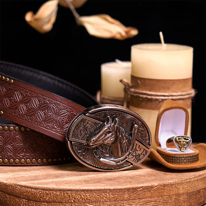 Functional DIY Hidden Knife Belt Buckle Retro Bull Ring Bundle Set