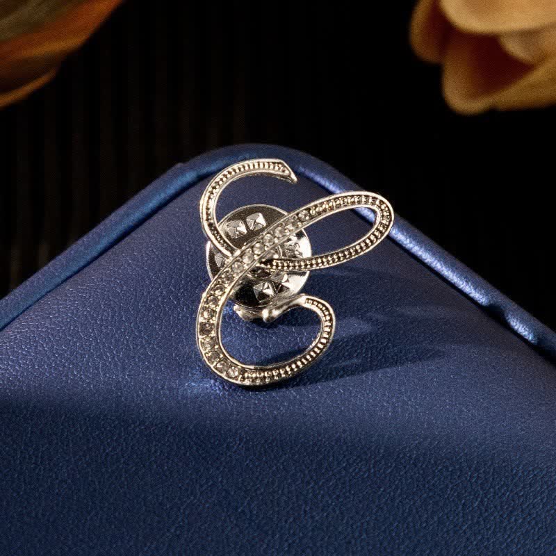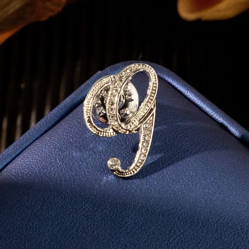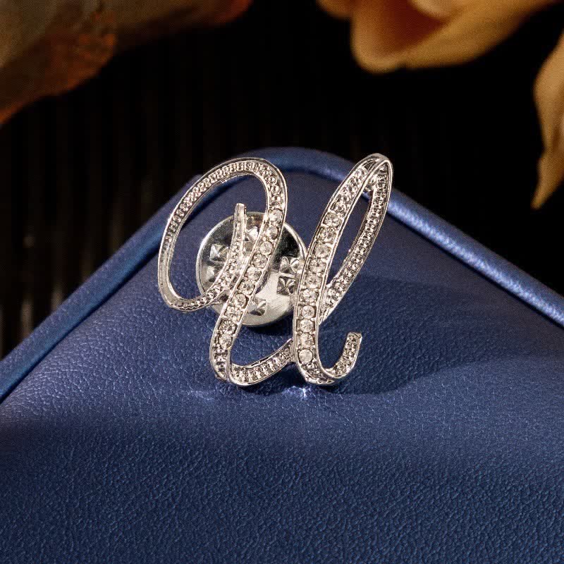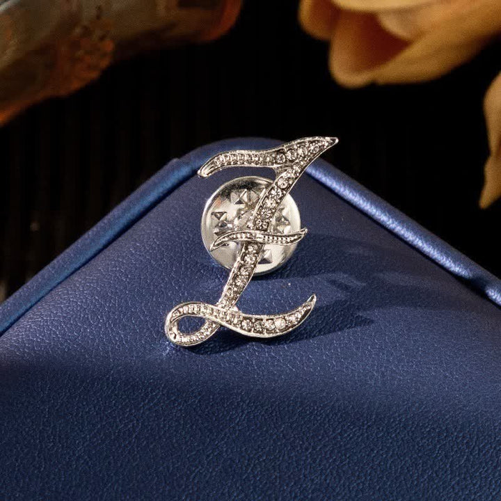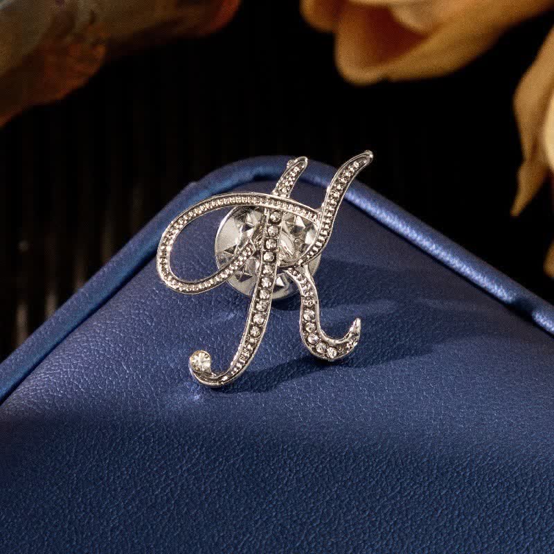 Initial Letter 26 Alphabet Silver Rhinestone Brooch