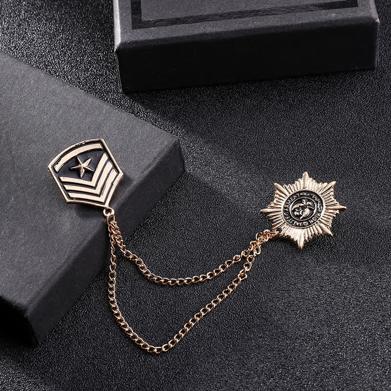 - The British Tassel Star Medal Brooch comes in the beautiful golden color with black linings and inscribing.
