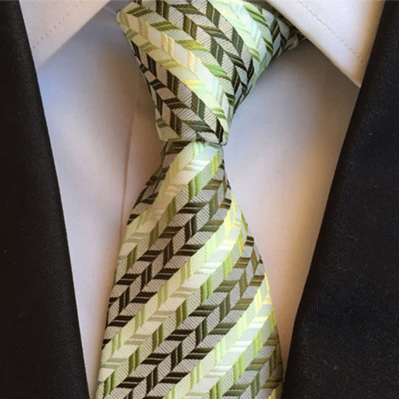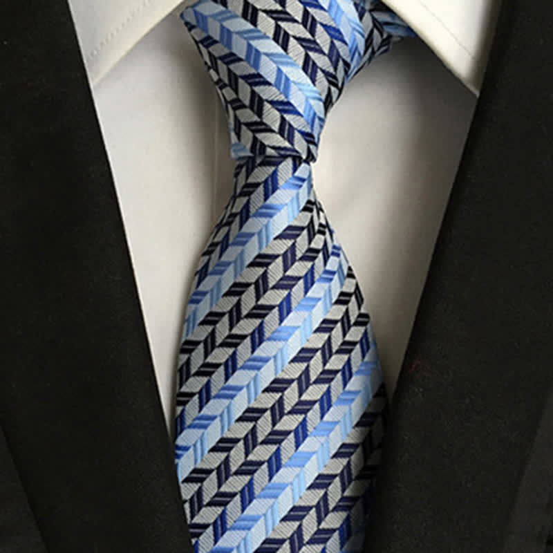 A stripe necktie is an extremely versatile tie. This broken fish bone patterned necktie makes a classy statement when worn with a dark suit.