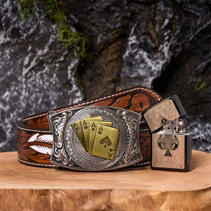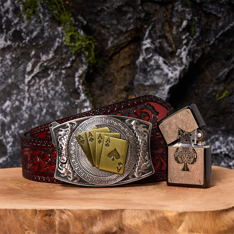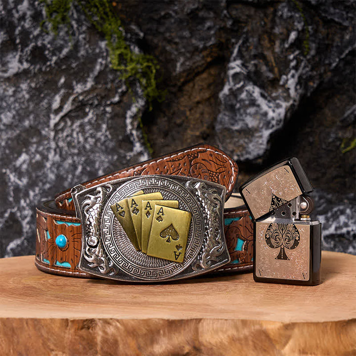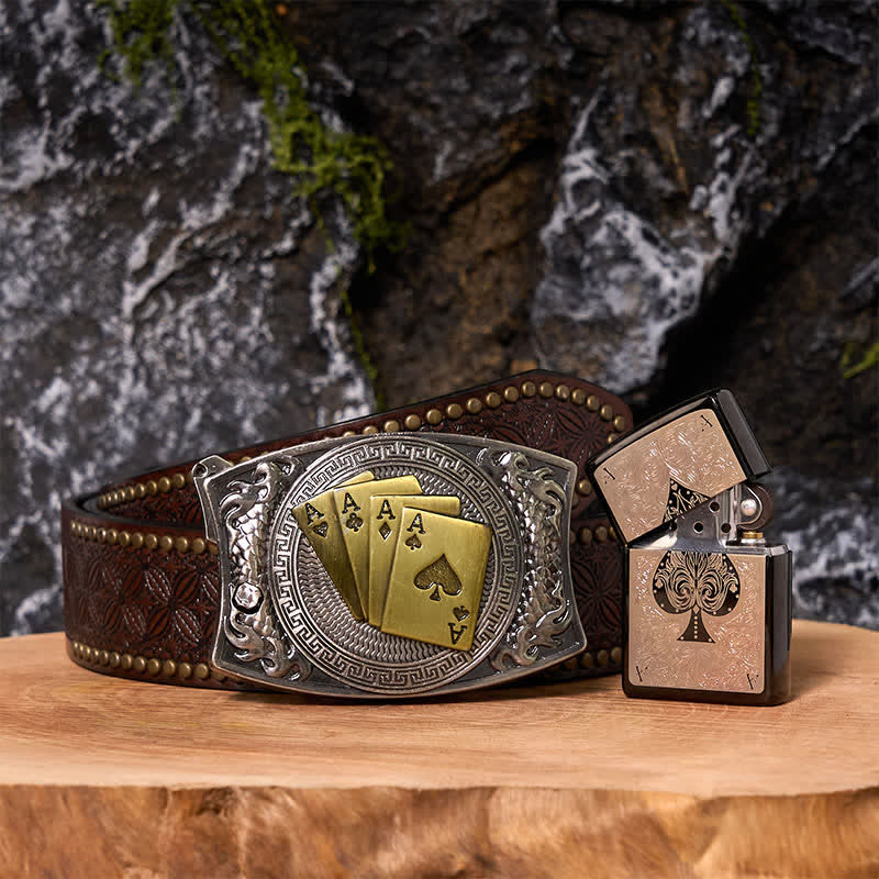 Poker Ace DIY Hidden Knife Belt Buckle Black Ice Lighter Bundle Set
