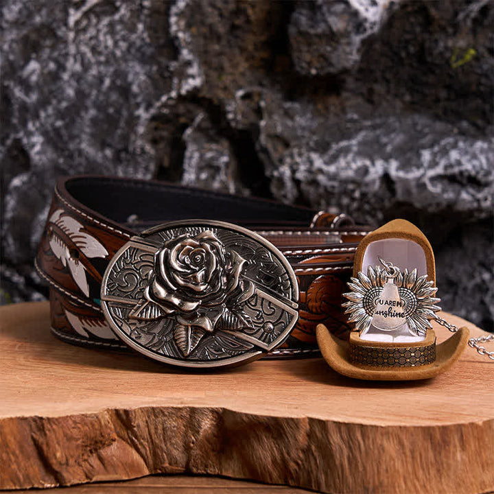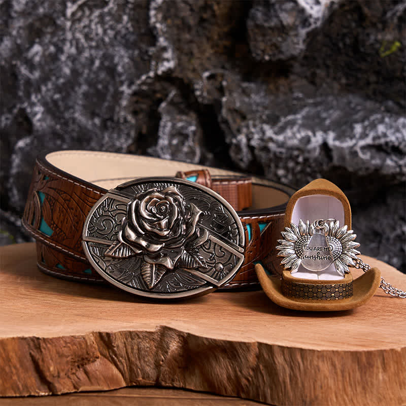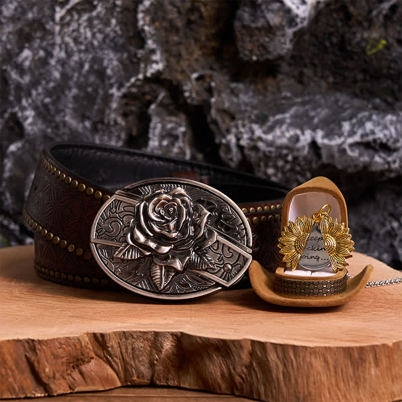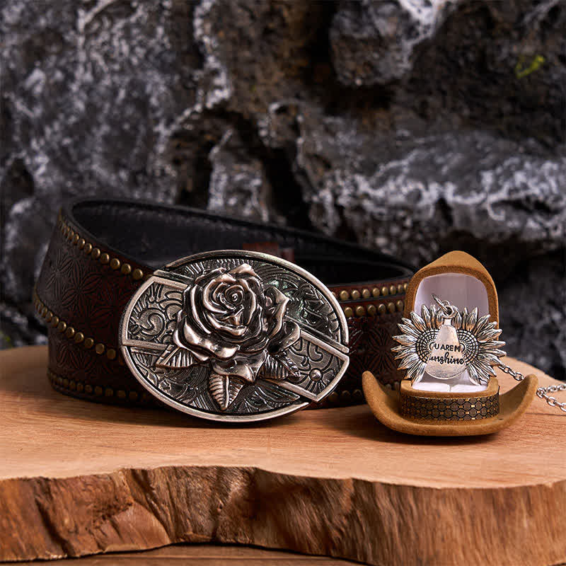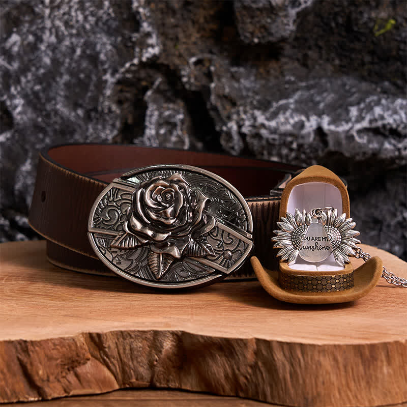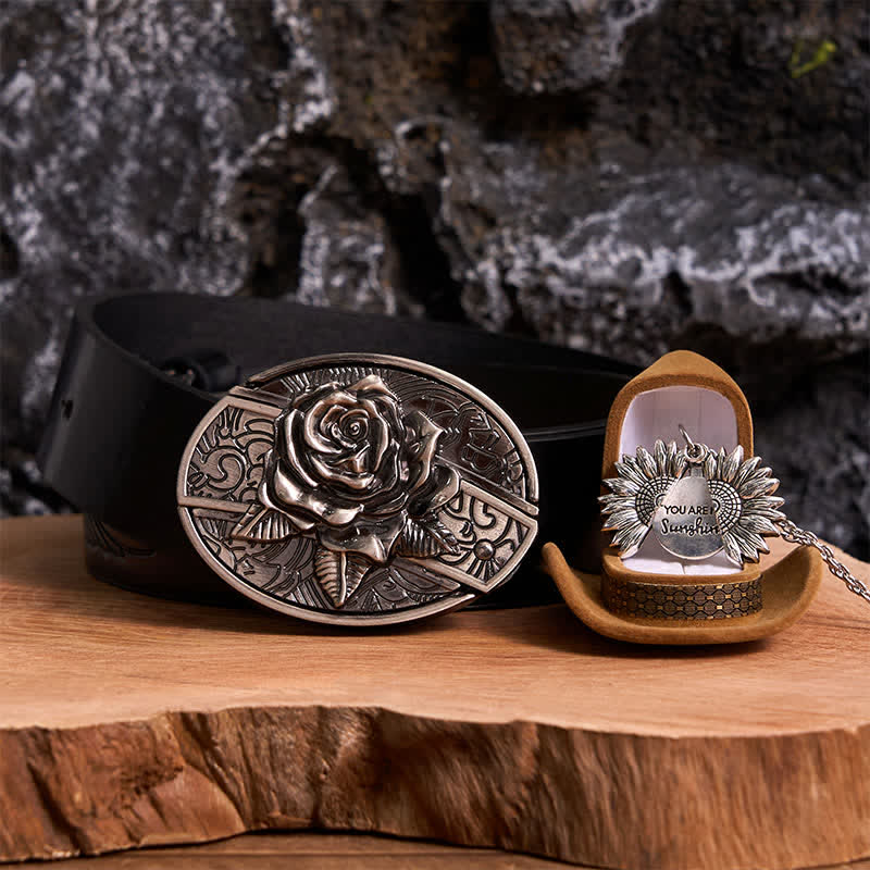 - Package: 1 Silver Rose Knife Buckle, 1 Gold / Silver Sunflower Necklace