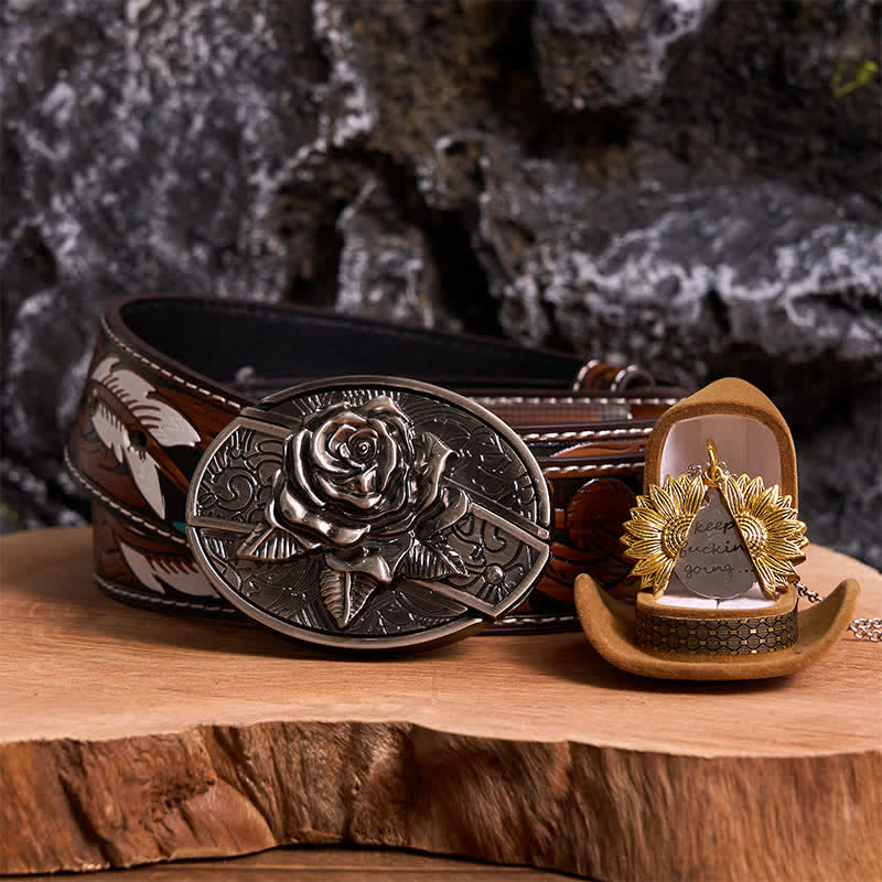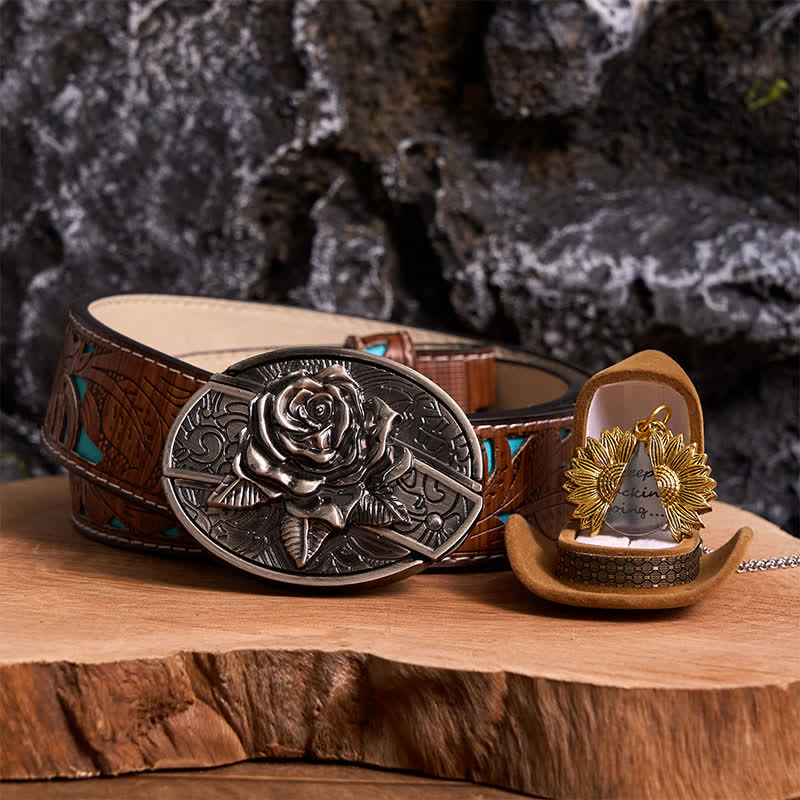 - DIY Silver Rose buckle is made of high quality alloy and adurable. With a slight push of your finger, the center of the belt buckle can easily slide out.