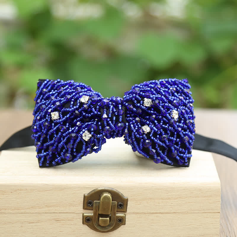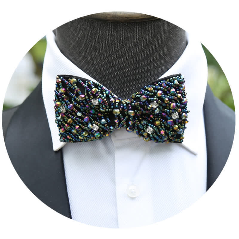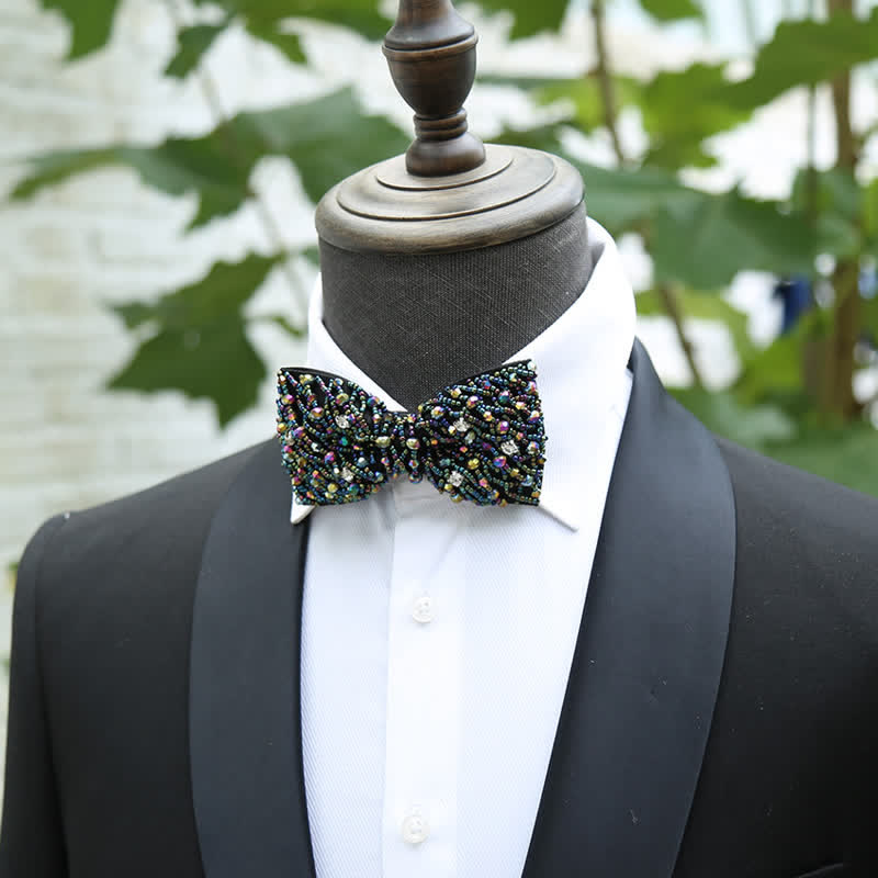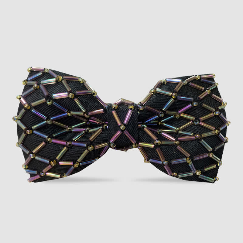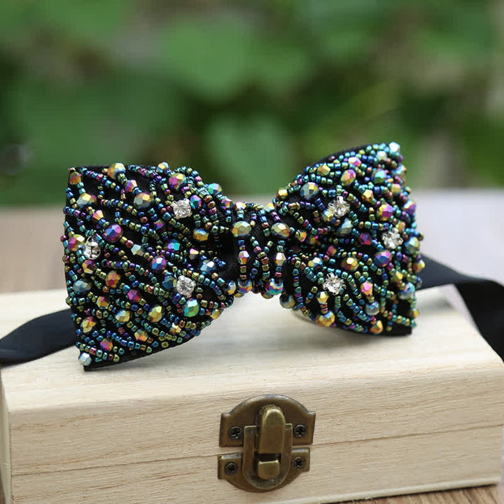 Sparkling Colorful Crystal Embroidered Beaded Bow Tie