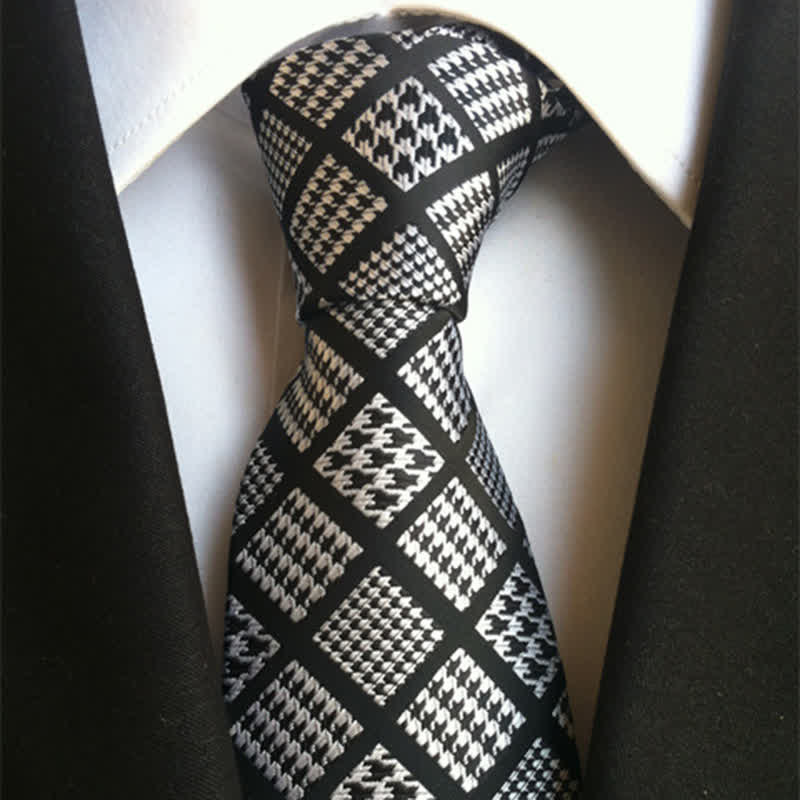 Men's Black & White Houndstooth Checked Necktie