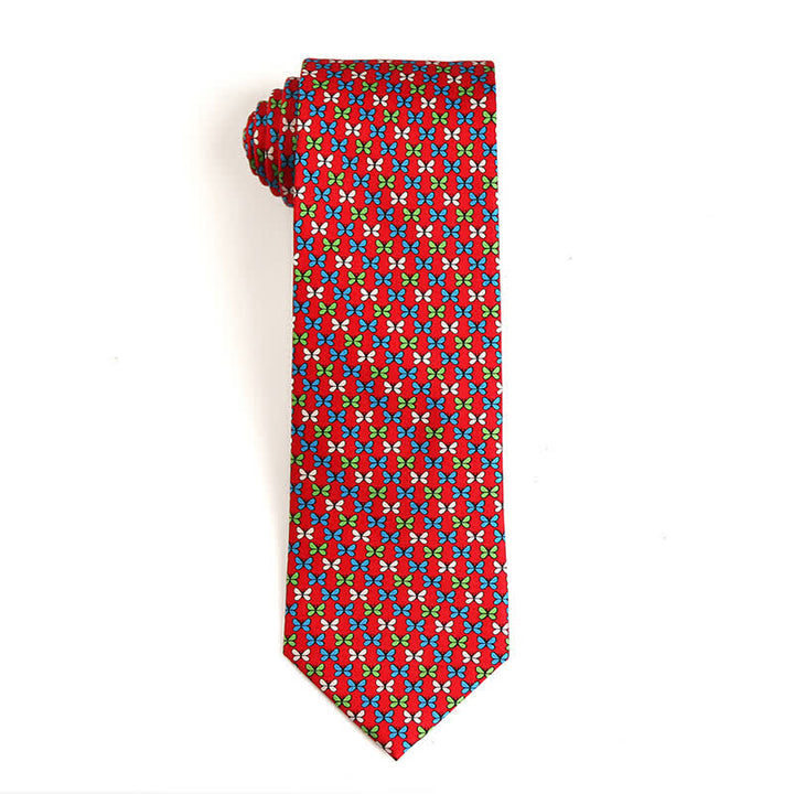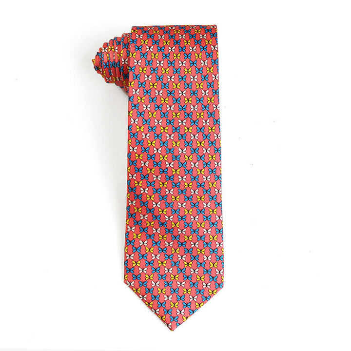 A lively animal pattern dances across the printed silk necktie. Thanks to its classic colorway and the natural shine of pure silk, this new design accentuates any elegant wardrobe.