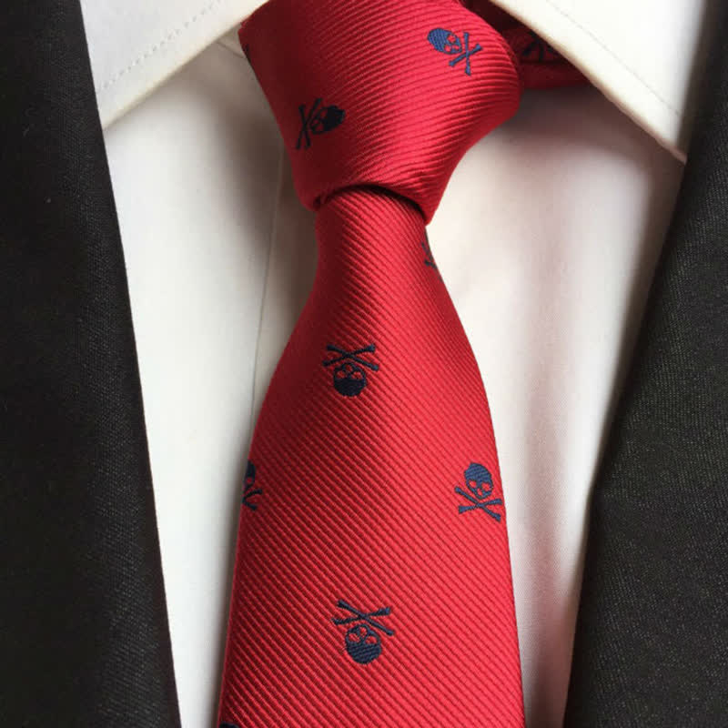 Put a smile on everyone's face thanks to this handsome necktie with woven skulls. The colors are classic, the width is modern, and the pattern is fun.