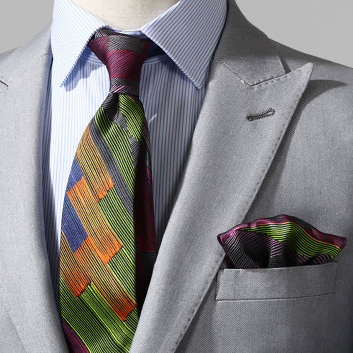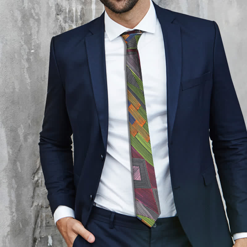 Abstract looking with modern aesthetics show a kind of distance exalted feeling. The vibrant blend of colors and intricate design embodies elegance significance, making this tie an exceptional accessory for all occasions.